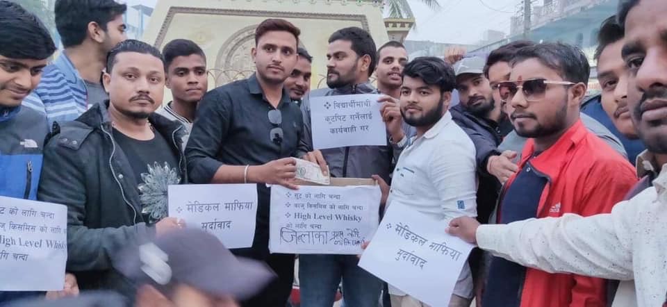 नेशनल मेडिकल कॉलेज मा भईरहेको विधार्थी माथी शोसन , कुटपिट र अनैतिक कार्यलाई नज़रअंदाज़ गर्दै आएको जिल्ला प्रशासन प्रमुख ज्युलाई सुटबुट र ठुलो उपहार दिन साथै दोषीलाई कार्यवाही गराउन निमित समाजवादी विधार्थी युनियन र नेपाल विधार्थी संघ पर्सा द्वारा सार्वजनिक रुपमा चन्दा संकलन ।