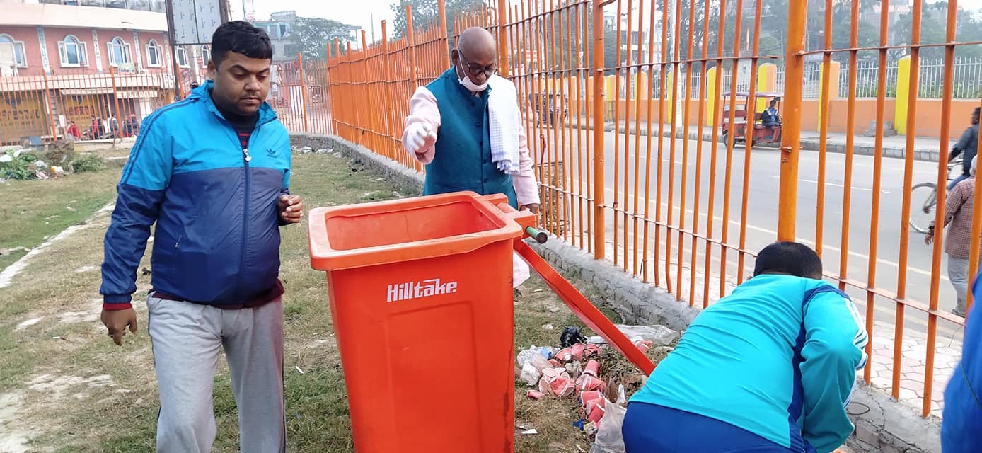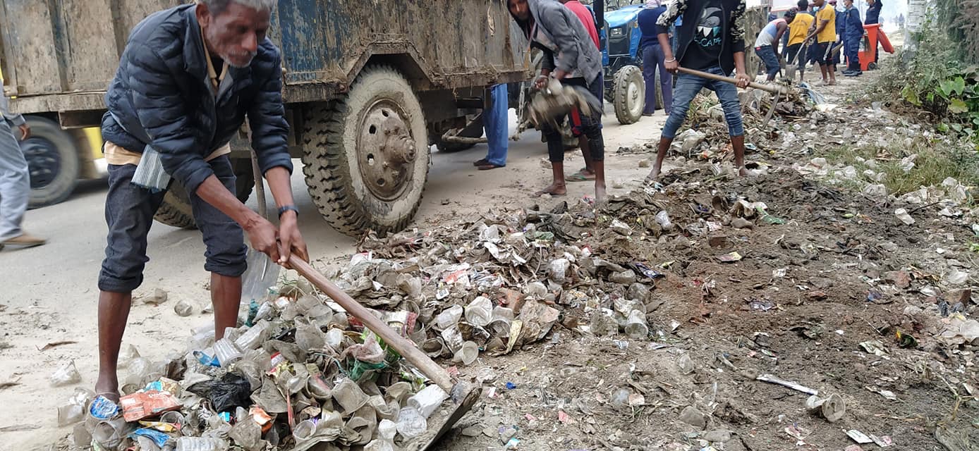 बिबाहपंचमी लाई मध्यनजर गर्दै जनकपुरधाम उप महानगरद्वार राम मंदिरको प्रांगण सरसफाई ।