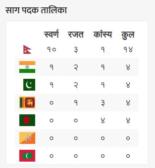 काठमाडौँ — १३ औं साग खेल अन्तर्गत तेक्वान्दोको पोम्सेतर्फ महिला एकलको २३-२९ वर्ष उमेर समुहमा नेपालकी पार्वती गुरुङले स्वर्ण जितेकी छिन् । यसमा श्रीलंकाले रजत जितेको छ ।पार्वतीले यस खेलमा ८.२५० अंक प्राप्त गर्दै स्वर्ण जितेकी हुन् भने रजतमा चित्त बुझाउन बाध्य भएकी श्रीलंकाकी थिलकसिका जयाविराले ८.१४० अंक प्राप्त गरेकी थिइन् ।यस्तै कास्य पदक भने भारतको पोल्टोमा रह्यो । भारतकी हर्षा सिंहाले ८.०३० अंक मात्रै प्राप्त गर्न सफल भइन् ।