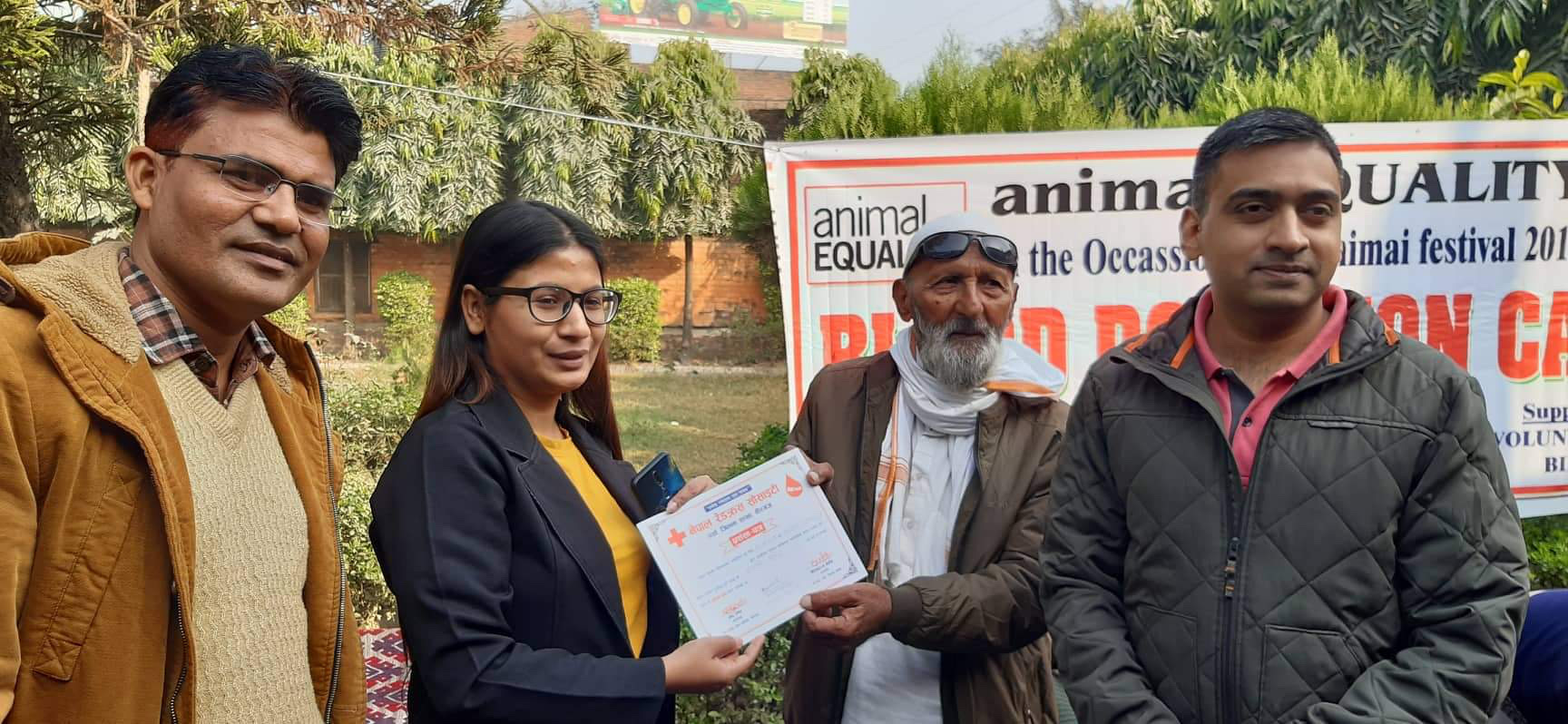 श्री गढिमाइ मेलाको खुसिमा रक्तदान । २०७६/८/१६- volunteers समूह बिरगंजको समन्वय एवं Animal Equality को आयोजनामा श्री गढिमाइ मेलाको अवसर पारेर खुसियाली सहित रक्तदान कार्यक्रमको आयोजना बारा जिल्लाको कलैयामा गरिएको थियोे ।
