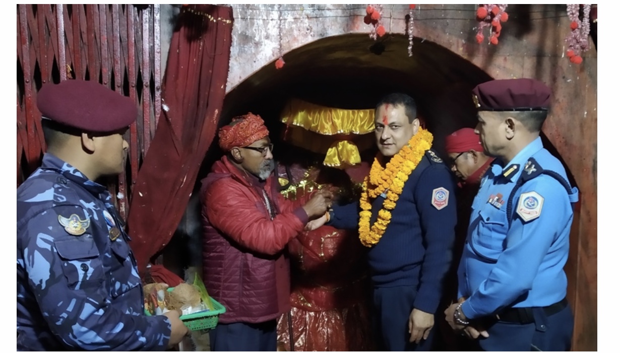 गढीमाई भर्न पुगेको नेपाल प्रहरीका महानिरीक्षक सर्वेन्द्र खनाल गढीमाई मन्दिरमा पूजा गर्दै |