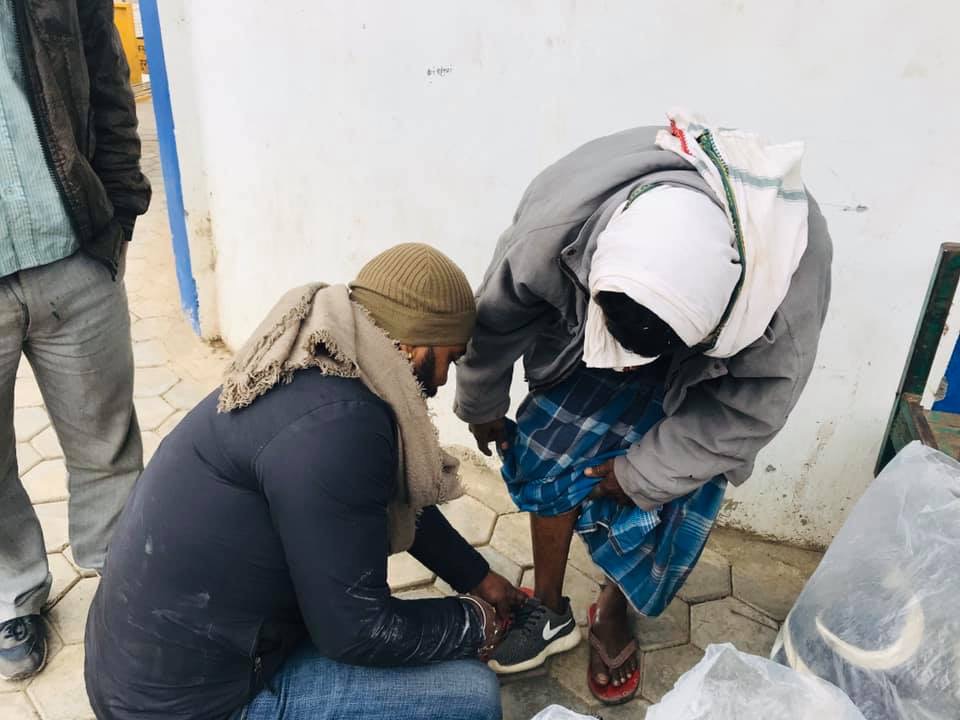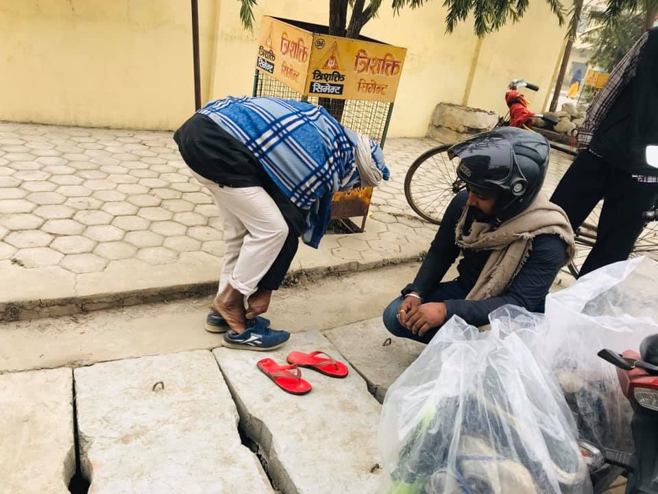 रिक्सा चालकले जुत्ता लगाउन नसक्दा Youths of Birgunj का शैली चौधरी आँफैले जुत्ता लगाउने क्रम को तस्बिर !