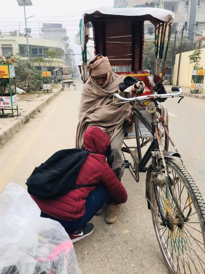 अत्यन्त जाड़ों बिच दैनिक जिवनयापनका लागी दैनिक मज़दूरी गर्ने र हामीलाई सुविधा प्रदान गर्ने रिक्सा चालकहरु जो यस्तो चिसो मौसममा पनि हवाई चप्पल वा ख़ाली खुट्टा रिक्शा शारीरिक परिश्रम गर्नेहरुलाई खुट्टा न्यानो बनाउन आज सानो प्रयास गर्दै प्रयोग गरेको जुता र नयाँ मोजा वितरण गर्दै युवा नेता निखिल बर्नवाल