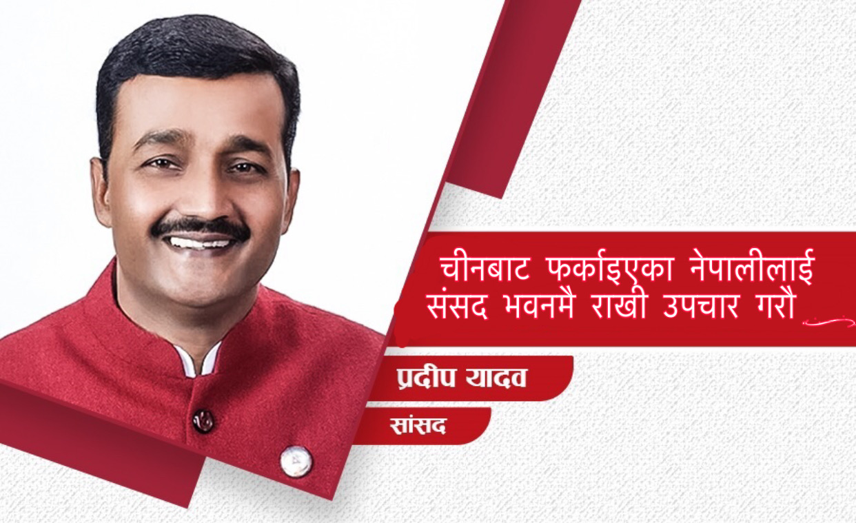 २१ माघ, काठमाडौं । सांसद प्रदीप यादवले चीनबाट उद्दार गरी ल्याउने नेपालीलाई राख्ने ठाउँ नपाए संसद भवन खाली गर्न प्रस्ताव गरेका छन् ।